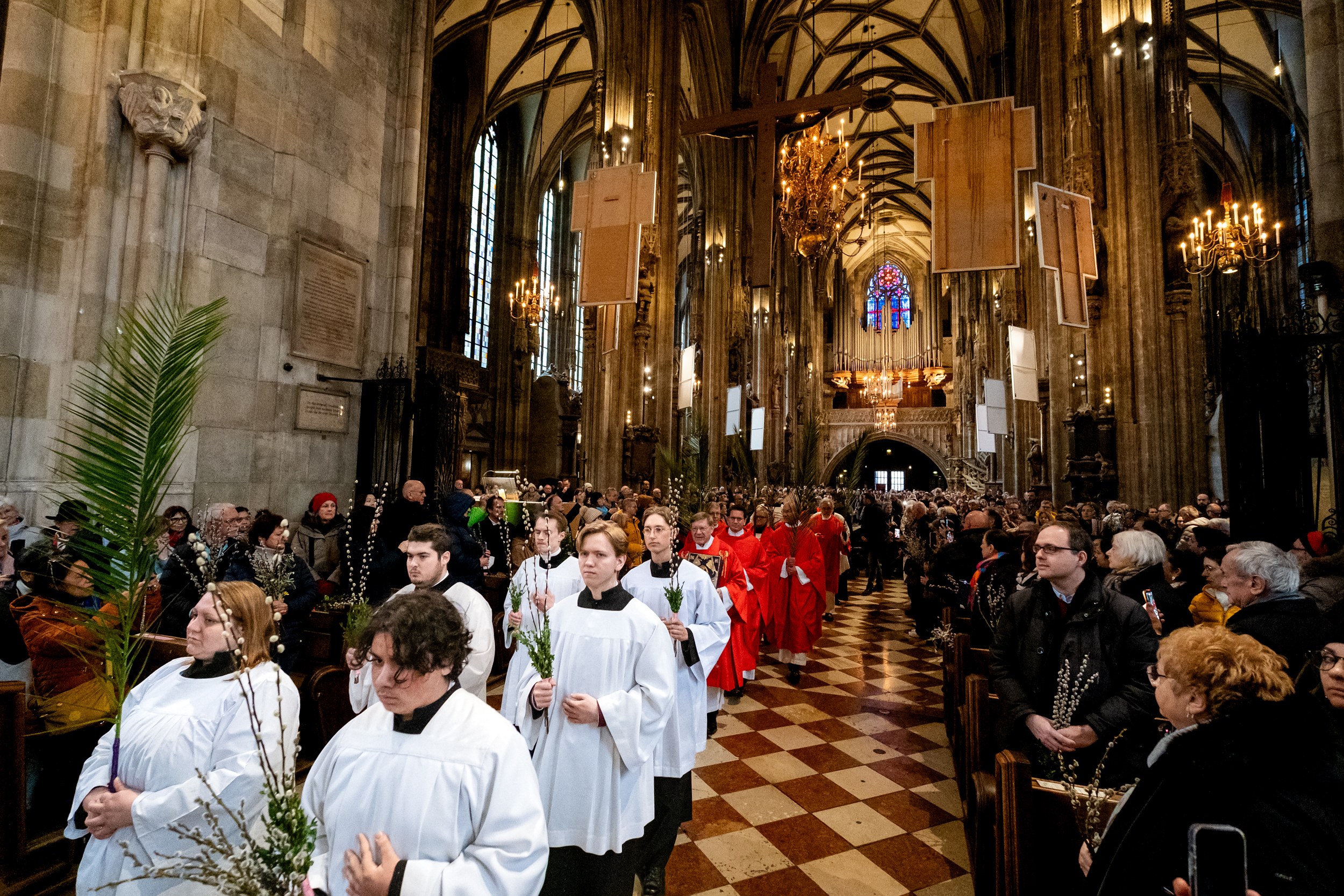 Mit zahlreichen Gläubigen hat der Wiener Erzbischof Josef Grünwidl den Palmsonntag als Auftakt zur Karwoche im Stephansdom gefeiert. Unsere Kamera war dabei.